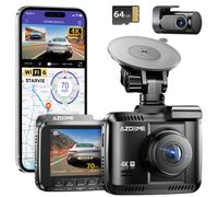 AZDOME Dashcam Auto Vorne Hinten 4K/2,5K GPS WiFi Dash Cam Auto mit Starvis, 64GB SD Karte, Auto Kamera, Parküberwachung, Super Nachtsicht, WDR, 170° Weitwinkel, G-Sensor, Loop-Aufnahme, GS63H Pro